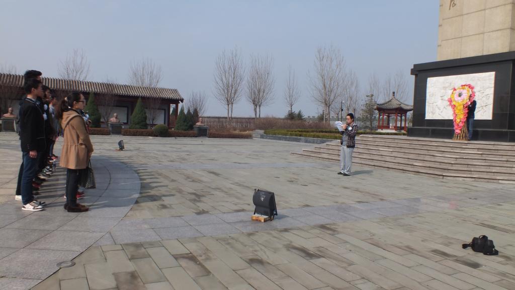 4月3日,为了表示对英烈的缅怀和敬意,学生怀着感恩敬仰的心情,手工制作了用于佩戴胸前的白花。4月4日清早8:00,同学们从学校出发,历时一个小时到达位于山海关地区的秦皇岛烈士陵园。9:30分,祭奠仪式正式开始,仪式由学生会副主席闵家锐主持。在低沉、哀痛的音乐中,学生代表向英烈们敬献了花圈。随后全体同学在烈士墓前默哀三分钟,表达对革命先烈的哀思。学生代表闵家锐在仪式上发表讲话,表达了对英烈们的哀悼和敬意。最后,同学们在烈士墓前进行了庄严宣誓。宣誓完毕,大家肃穆敬仰的烈士墓绕行一周,将胸前佩戴的白花依次敬献给了英烈们,以示悼念与缅怀。