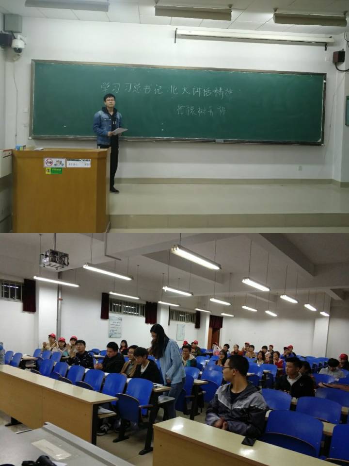 学生科、学生会、研究生会、学生党支部、科协技术协会、柠檬树青年志愿者协会、各团支部分别以不同形式在不同地点进行了“习近平总书记在北京大学师生座谈会上的讲话”的学习讨论,深入开展学习、宣传、研究习近平总书记重要讲话精神,把习近平总书记重要讲话精神传达给每一位与会同学,努力把习近平总书记的重要讲话落实到学习生活的各个方面。在学习交流过程中,各与会人员积极发言,将习近平总书记重要讲话精神同自身实际相结合,提出自己的看法及观点:一是爱国,忠于祖国,忠于人民;二是励志,立鸿鹄志,做奋斗者;三是求真,求真学问,练真本领;四是力行,知行合一,做实干家。每个人都认真聆听他人发言,并认真思考、学习,受益颇多。