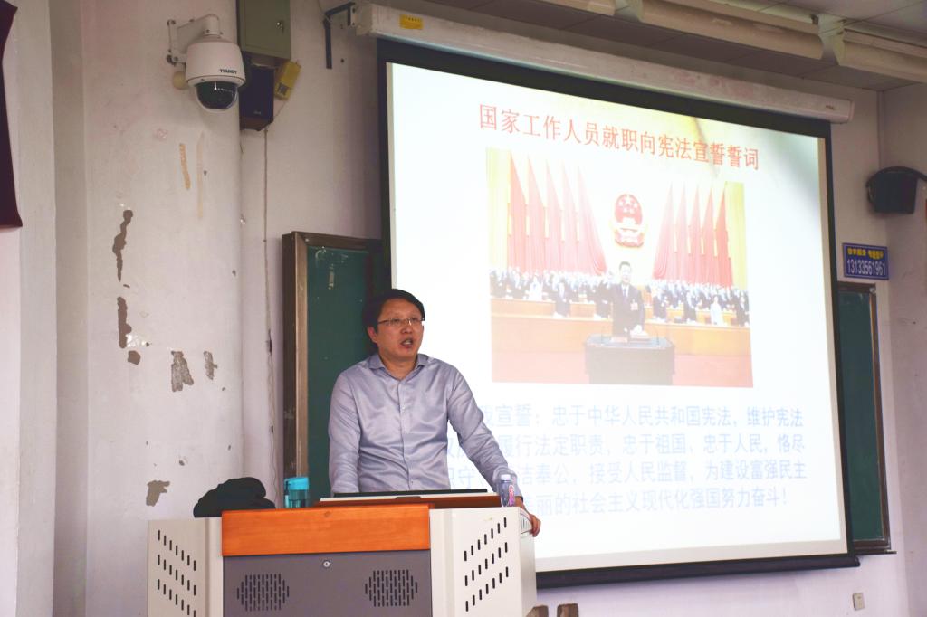 邀请校党委讲师团成员、马克思主义学院刘永志副院长,在西区四教101室作题为《不忘初心话改革——从邓小平到习近平:改革逻辑与改革走向》的专题培训。讲座由学院党委书记王丽萍主持。学院全体党员师生聆听了本场讲座。