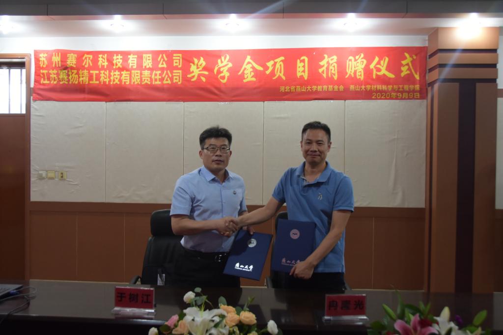 9月9日下午4:30,江苏赛扬精工科技有限责任公司、苏州赛尔科技有限公司奖学金项目捐赠仪式于材料A馆325室举行。动漫花园