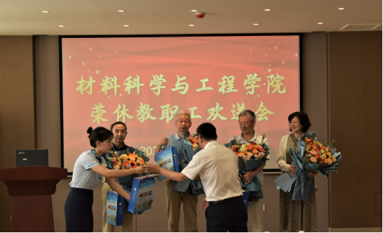 在材料B馆424房间举办学院荣休教职工欢送会,为学院金属材料工程系沈德久、徐瑞、景勤,无机非金属材料工程系王明智、马明臻、于万里,教务科闫淑兰等荣休老教师送上敬意和祝福。学院领导班子,金属材料工程系、无机非金属材料工程系、行政办公室各党支部书记、系主任、工会小组组长,以及学院年轻教师代表出席了本次欢送会。会议由学院工会主席王亦晨主持。