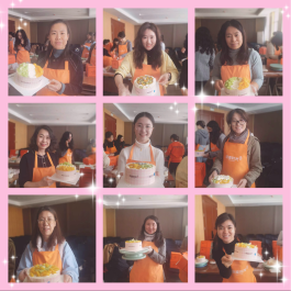 活动伊始,李曦达书记代表学院领导班子对全院女教工送上了节日的祝福,肯定了女教工在工作岗位上的辛劳付出和取得的优异成果,并祝愿大家在本次“劳动”中体验快乐、放松身心,今后生活幸福美满。随后,大家认真学习了蛋糕烘焙老师的现场讲解和演示,根据各自的审美情趣,结合蛋糕胚子的形状、水果的种类、辅料的颜色等进行构图、布局和装裱,经过不断的尝试和实践,一个个集个性和美味于一体的蛋糕作品展现在大家眼前,令人垂涎和欣喜。