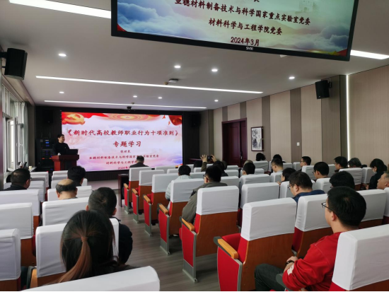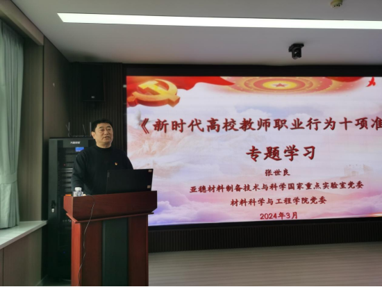 联合亚稳材料制备技术与科学国家重点实验室在里仁行政楼113会议室举办学习《新时代高校教师职业行为十项准则》(以下统称《准则》)专题讲座暨师德师风警示教育大会。讲座由国家重点实验室党委书记张世良主讲、动漫花园
