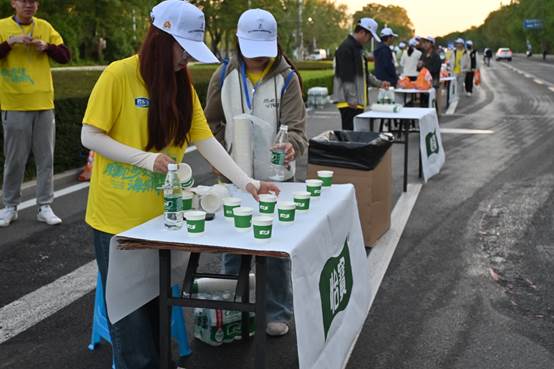 (图为起跑前志愿者进行饮用水准备工作)