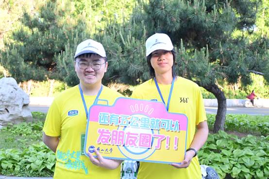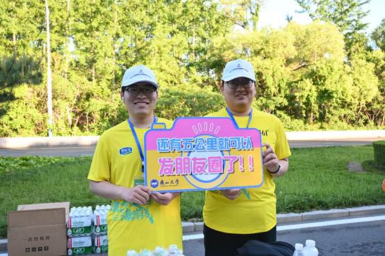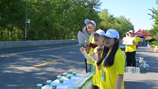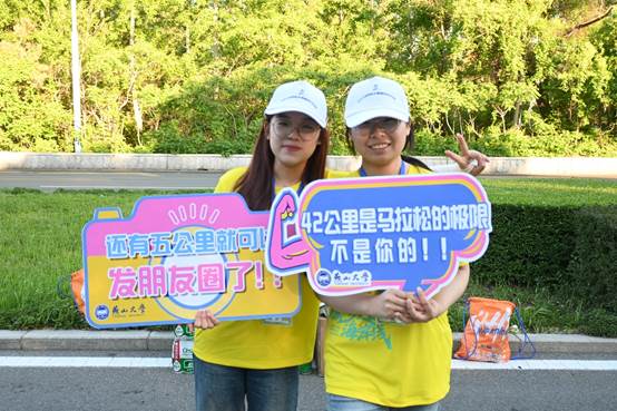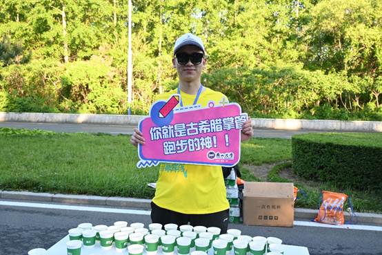 随着起跑枪声的响起,志愿者们通过收集直播看到马拉松运动员的身姿飞扬在跑道上,而志愿者们也因即将到来的志愿服务更加热血澎湃。随着运动员陆续到达10公里处,志愿者们以最饱满的热情开始服务迎面跑来的参赛选手:是及时递出水杯,为选手们缓解干渴;是举起应援牌,“42公里是马拉松的极限,不是你的”“你就是古希腊掌管跑步的神”,大声呐喊,加油助威。志愿者们不仅是这场赛事的见证者,也是热血激情的助力者。