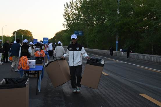 随着最后一名参赛运动员跑过,本次服务接近尾声,志愿者们工作热情不褪,搬运剩余物资,清理位点垃圾,高效完成撤场任务,弘扬了“奉献、友爱、互助、进步”的志愿者精神。