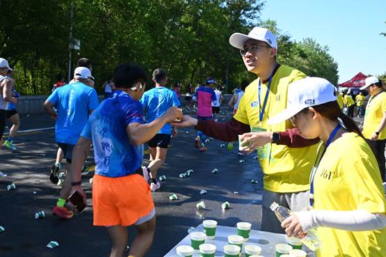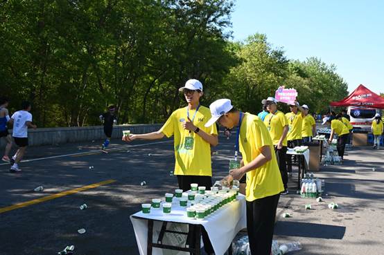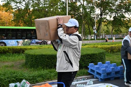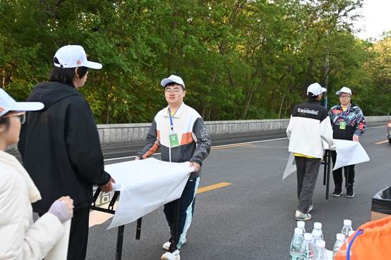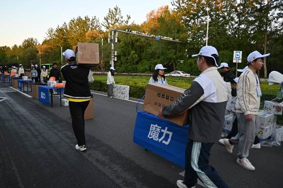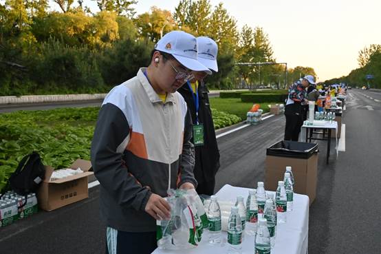 到达补给地点后,志愿者们各司其职,快速投入志愿服务准备中,将温暖和关怀化为支持运动员的力量,为国内外的一万七千余名选手提供坚实保障。