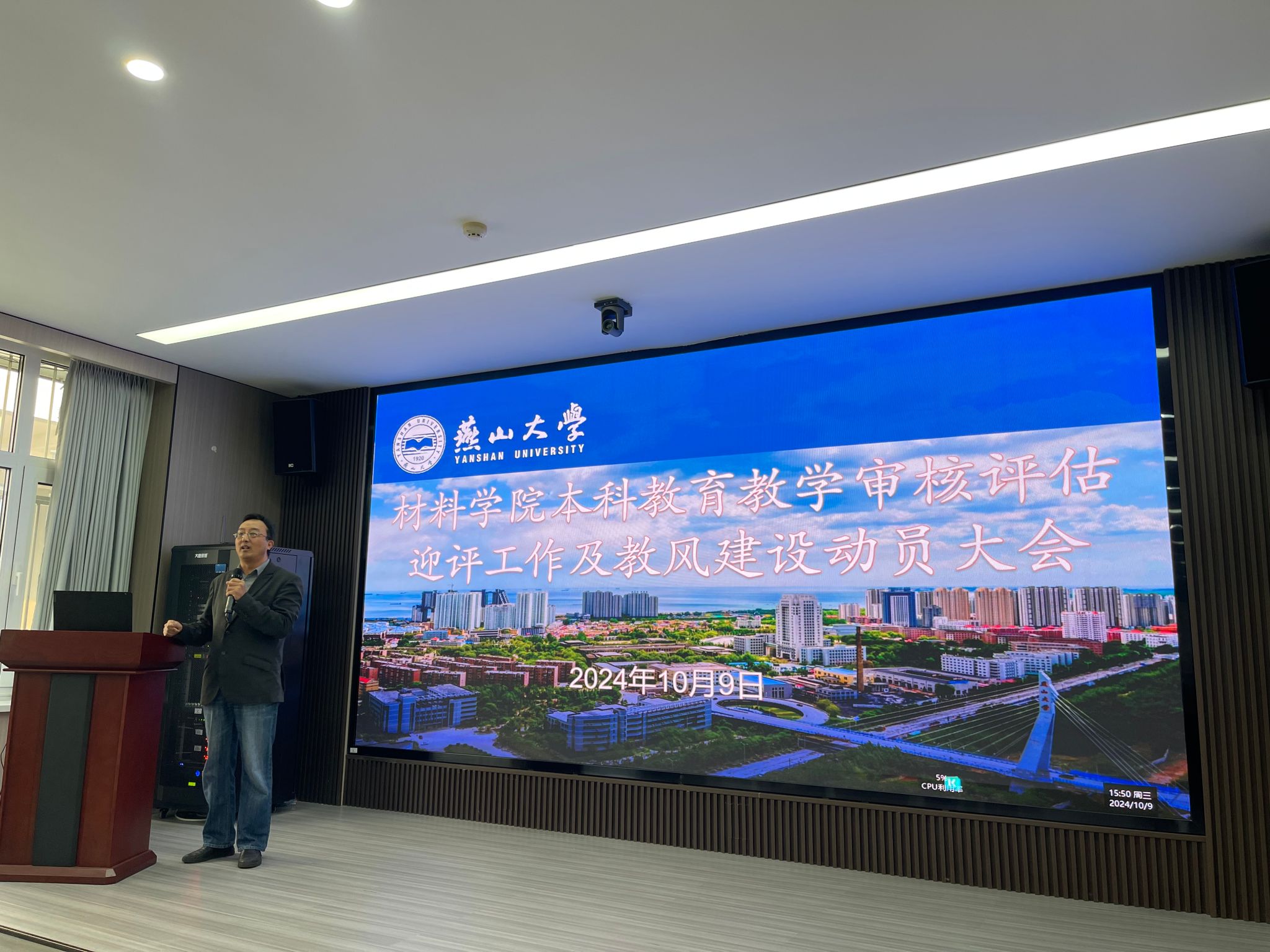 于2024年10月9日召开了本科教育教学审核评估迎评工作暨教风建设动员大会。此次会议由学院党委书记王国伟主持,学院领导、各系主任、教师及教学相关工作人员参加会议。