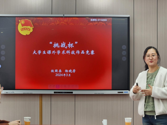 团委在里仁行政楼102会议室举办了菁材讲坛——“挑战杯”系列赛事经验分享交流会。校团委科技部部长杨晓芳作为主讲嘉宾,为师生团队带来了精彩的分享。