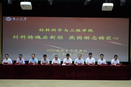 8月30日,2025级新生开学典礼在西校区大学生活动中心隆重举行。新生们在视频《材料人的使命与担当》观看中直观感受到学院科研实力与“材料人”使命担当,在张世良书记的欢迎致辞中感受到校园的温暖,在共同庆生中感受学院的关怀,在新生代表刘婧玮的初心分享中感受新的开始,在王国伟书记的殷殷叮嘱中更加深刻感受“燕大材料人”的重要身份意义。