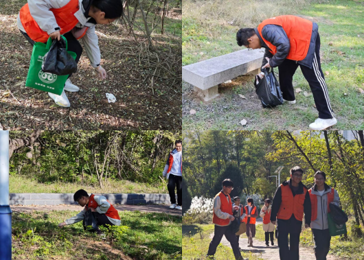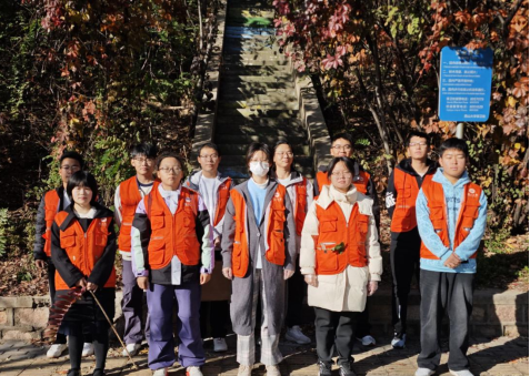 组织志愿者前往塔山公园举办“塔山拂尘,落叶藏秋”劳动实践活动。