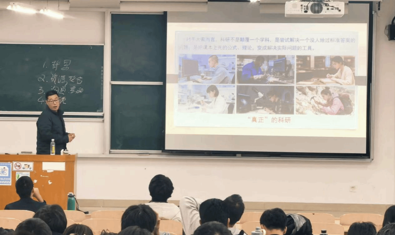 讲座中,杨健教授以“科研”为核心线索,围绕“为什么做科研”“科研是什么”“如何做好科研”三大核心问题,为新生们搭建起通往科研世界的清晰桥梁。