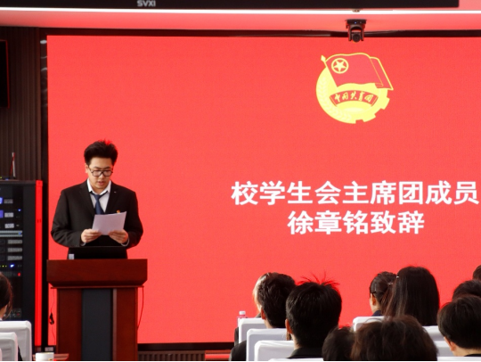 第四次学生代表大会(以下简称“学代会”)和第四次研究生代表大会(以下简称“研代会”)在里仁行政楼113会议室顺利召开。学院党委副书记王亦晨、团委书记魏东出席大会,校学生会执行主席徐章铭、校研究生会主席团成员马淑玮以及兄弟学院学生会、研究生会主席团代表应邀参会。