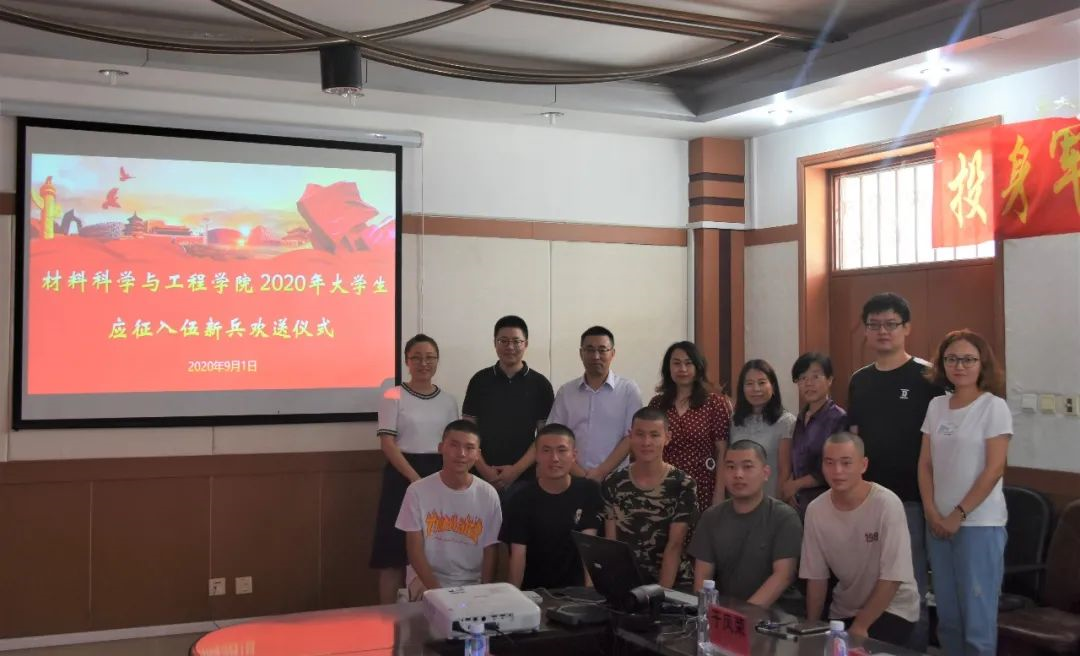 2020年大学生应征入伍新兵欢送会在材料A馆325室举行。本次欢送仪式由学院副处级辅导员王亦晨主持,学院党委书记李曦达、院长王利民、金属材料工程系主任李艺君、金属材料工程系党支部书记冯士东、无机非金属材料工程系党支部书记于凤荣、高分子材料工程系主任彭桂荣以及学院学生工作办公室部分辅导员、在校的预备入伍学生以及学生代表出席本次欢送会。