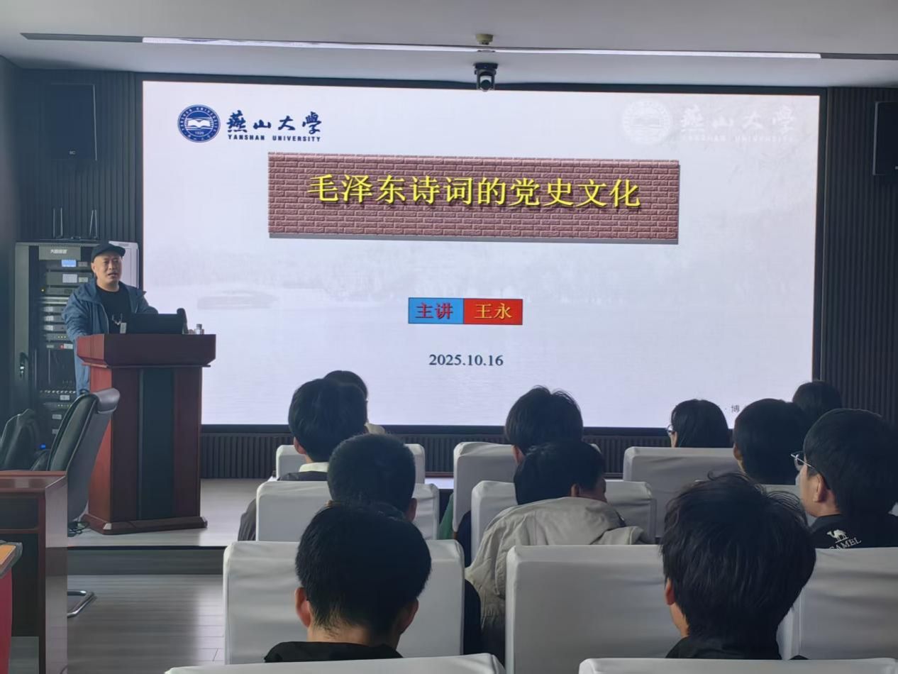新办公楼113会议室开展《毛泽东诗词的党史文化》专题党课,学院34名学生党员和30名发展对象参与学习。