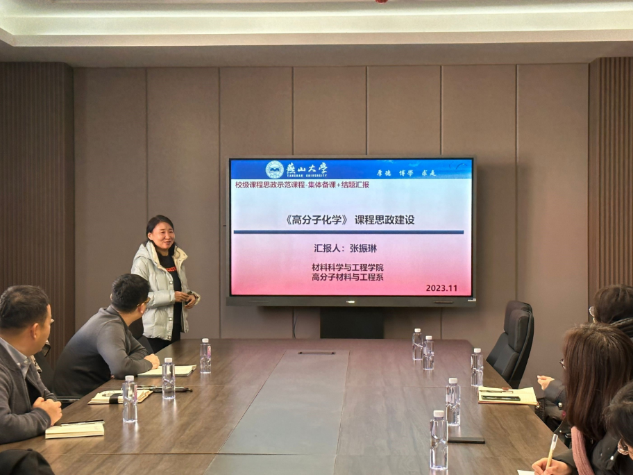 教师的课程思政教学方案逐一进行了精彩点评,肯定了老师们在专业课程中融入课程思政元素的方法和特色,并对课程思政的评价问题,以及如何习近平新时代中国特色社会主义思想的核心内容有机结合专业内容和课程思政元素方面提出了建议。同时,马克思主义学院教师对自己的思政课程内容及特点进行了介绍,探讨思政课中专业元素的切入点,研讨课程思政教学内容与方法设计,并对整个高分子材料专业思政建设的框架、内容设计提出了宝贵意见。之后,经过集体讨论,一致推荐张振琳老师的《高分子化学》课程为优秀思政示范课程。